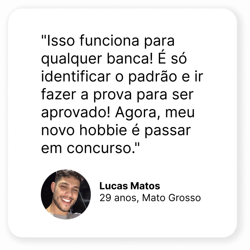 "É muito simples! Cada banca tem um padrão de resposta para evitar recursos e anulações. Por isso, quando você utiliza a IA para identificar esse padrão, é impossível errar qualquer questão da prova", diz Marcos Silveira.