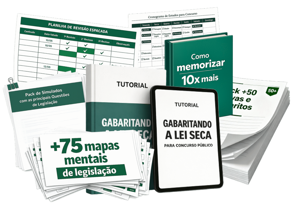 Descubra quais são as travas que te fazem errar questões de lei seca… falta de método, tentativa de decorar palavra por palavra ou jeito errado de estudar legislação.